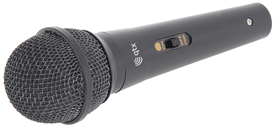 Handheld dynamic microphone with a durable plastic body and steel mesh windshield. Suitable for vocals and general PA or recording applications.