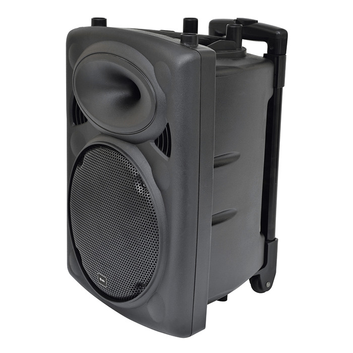 The QTX QR10PA system represents a compact combination of portable power amplification features designed especially for DJs along with performers and presenters. This portable PA system offers built-in amplification plus an 8-hour rechargeable battery and numerous audio input capabilities to provide crisp, powerful sound whenever needed. This portable device features a VHF wireless neckband microphone with SD and USB flash-card playback and Bluetooth connectivity, as well as a microphone port for multiple uses during festivals, fitness exercises, and public speaking.