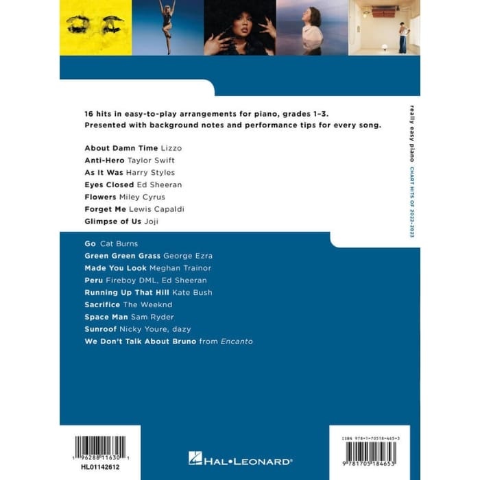 Really Easy Piano Chart Hits of 2022-2023 is a beginner friendly piano songbook with 16 popular songs from 2022 and 2023. Each song includes easy arrangements, chord symbols, lyrics, and simple playing tips. Ideal for learners who want to play modern hits with confidence and enjoyment.