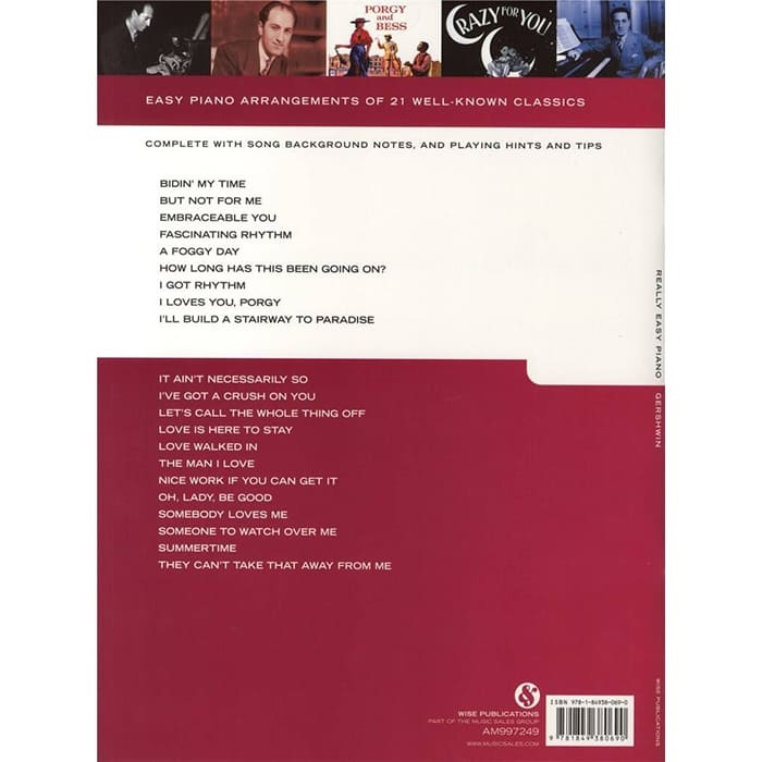 Really Easy Piano: Gershwin includes 21 well-known Gershwin songs arranged for easy piano. Each piece comes with notes and playing tips, making it ideal for beginners who want to learn and enjoy timeless jazz standards.