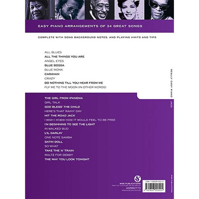 Really Easy Piano Jazz is a beginner piano book with 24 easy jazz songs. It includes popular tunes like Fly Me To The Moon. The music is simple to read and play, making it perfect for new learners. Each song comes with tips and short notes to help you improve.