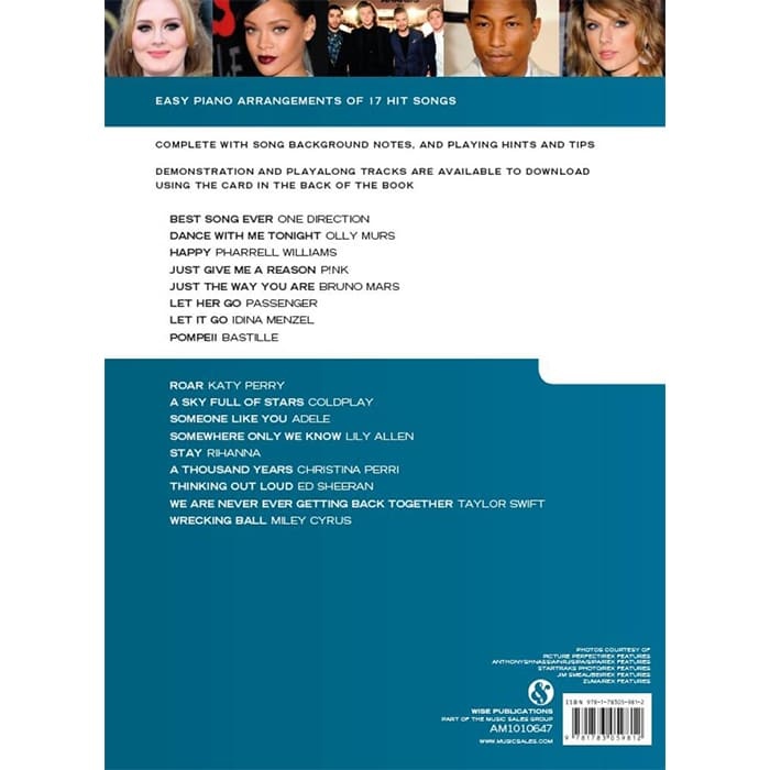 The Really Easy Piano Playalong Chart Hits (Book Audio Download) offers 17 Easy Piano arrangements of popular songs with online demo and backing tracks. It includes fingering tips, lyrics, and song notes to support learning, making it ideal for beginners who want to play familiar chart hits with confidence.