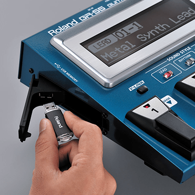 | Connectors | GK IN connector (13 pins DIN type) GUITAR OUT jack (1/4-inch phone type) OUTPUT L/MONO, R jacks (1/4-inch phone type) PHONES jack (Stereo 1/4-inch phone type) MIDI connectors (IN, OUT) (5-pin DIN type) USB COMPUTER connector (supports Hi-Speed USB, USB MIDI and USB Audio) USB MEMORY connector (supports Hi-Speed USB Flash Memory) DC IN jack |