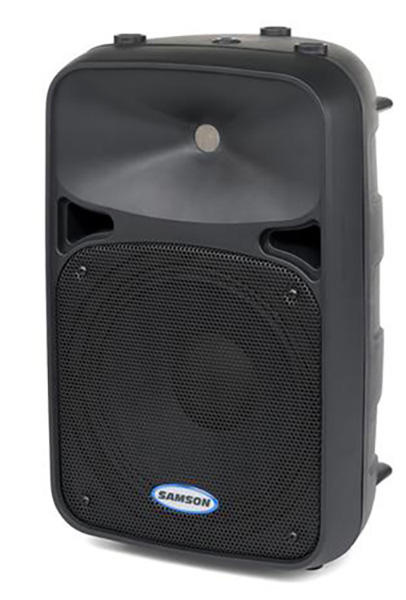 The Samson Auro D210 PA Speaker offers professional 200-watt sound in a compact, lightweight package. Its 10-inch low-frequency driver and 1-inch compression driver provide clear, balanced audio. A Mic/Line input with volume control and Clip LED allows easy level adjustments, and a line output enables multiple speakers to be connected. The speaker includes a 1 3/8-inch pole mount and floor monitor positioning options for flexible placement.