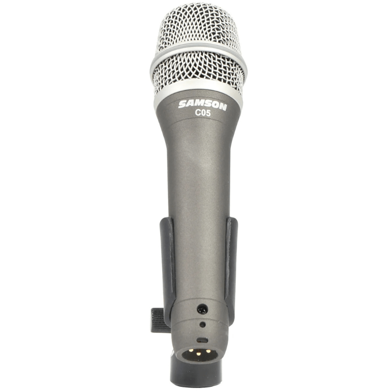 The Samson C05 CL Handheld Condenser is designed for live vocals with clear and detailed sound. It uses a 19mm condenser capsule with shock mounting to reduce handling noise. The cardioid pickup pattern focuses on the voice and limits background sound. A gold-plated XLR connector provides a secure connection to mixers using 48V phantom power. The strong metal body is built for regular stage use. Accessories included make it ready to use right away.