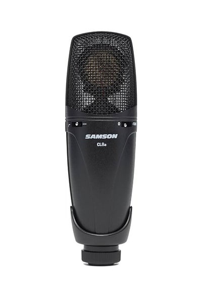The Samson CL8A Large-Diaphragm, Multi-Pattern Condenser Mic captures detailed sound with dual shock-mounted 1.1"" capsules and gold-sputtered diaphragms. It offers cardioid, bidirectional, and omnidirectional pickup patterns for versatile recording. A wide 20 Hz–20 kHz frequency response, switchable high-pass filter, and 10 dB pad handle a variety of sources. Phantom-powered and built with solid die-cast construction, the CL8A is reliable for home studios, project studios, and professional environments.