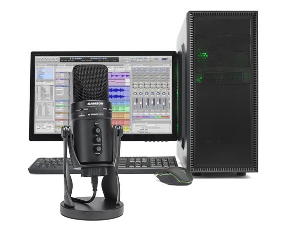 The Samson G-Track Pro USB Mic With Audio Interface is an all-in-one solution for recording vocals and instruments. Its dual 1" condenser capsules support cardioid, bidirectional, and omnidirectional pickup patterns. Record both microphone and instrument channels at the same time in 24-bit/96kHz resolution. The 1/8" headphone output allows zero-latency monitoring, while the integrated mixer and plug-and-play USB connection make setup simple on Mac or PC.