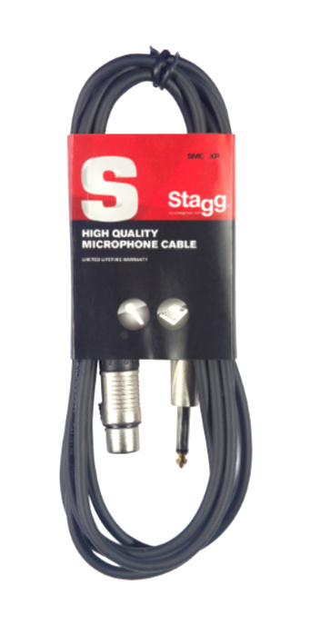 Stagg 10M / 33FT Microphone Cable XLRf-PLUG provides reliable audio with XLR to jack connectors. Durable black design, flexible 10-metre length, and RoHS compliance ensure performance and safety.