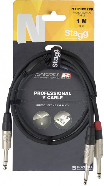 The Stagg 1M/3FT Split ST. Plug 2 Plug DLX is a sturdy Y cable for clean stereo to mono splitting. It uses REAN connectors for a secure and reliable connection. The 1 meter length makes it easy to manage in small studio spaces or live rigs. It is RoHS compliant and built to handle constant use.