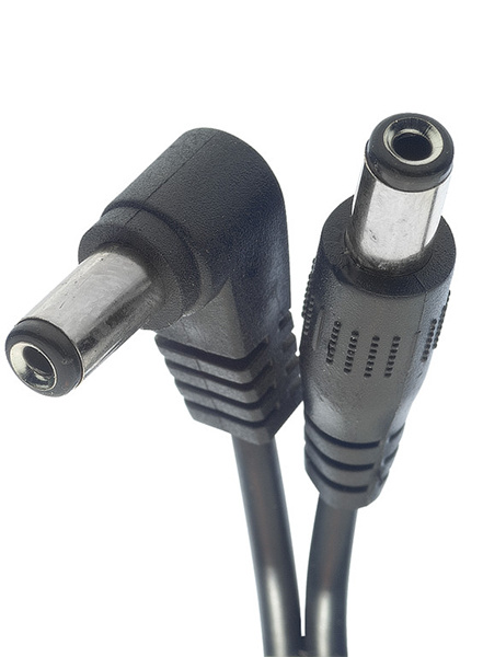 Power cable, DC/DC (m/m, L-shaped/straight), 20 cm (0.7'), black