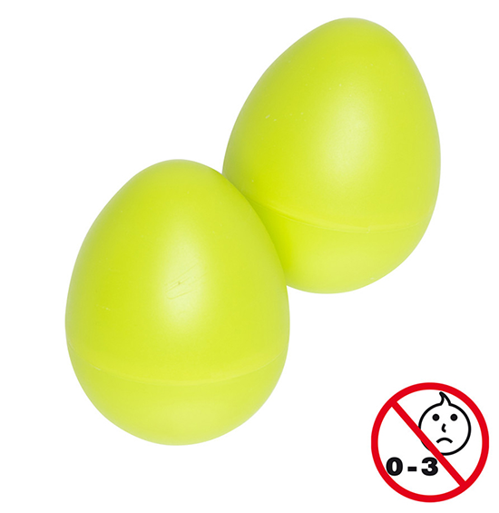 The Stagg 2pc Egg Shakers in vibrant green are made from durable plastic and weigh 1 1/4oz (35g), perfect for young hands. With toy safety certification (EN71, ASTM F963, SOR), they are safe for children aged 3 and up.