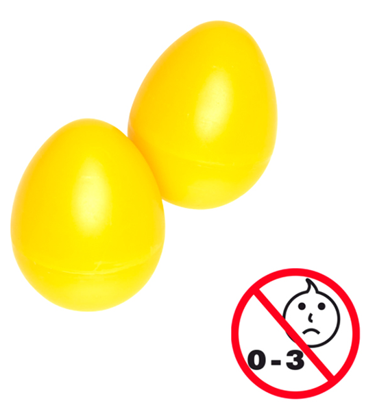 The Stagg 2pc Egg Shakers in bright yellow are made from durable plastic and weigh 1 5/8oz (45g), perfect for young hands. With toy safety certification (EN71, ASTM F963, SOR), they are safe for children ages 3 and up.