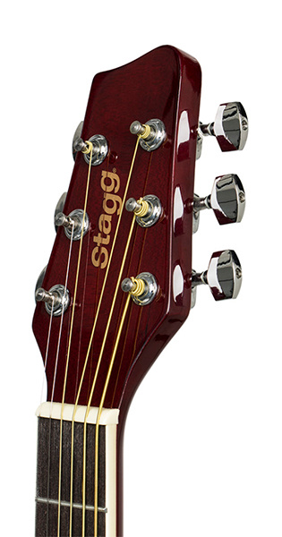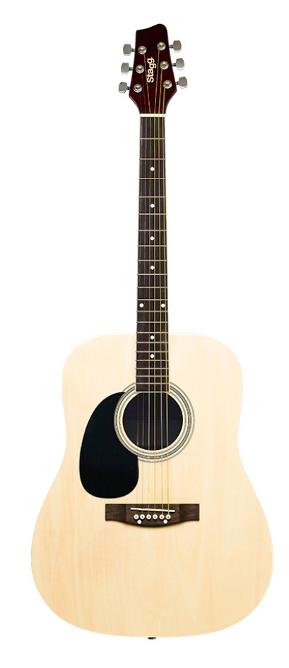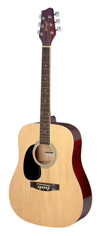 Stagg 3/4 natural dreadnought acoustic guitar with basswood top, left-handed model.