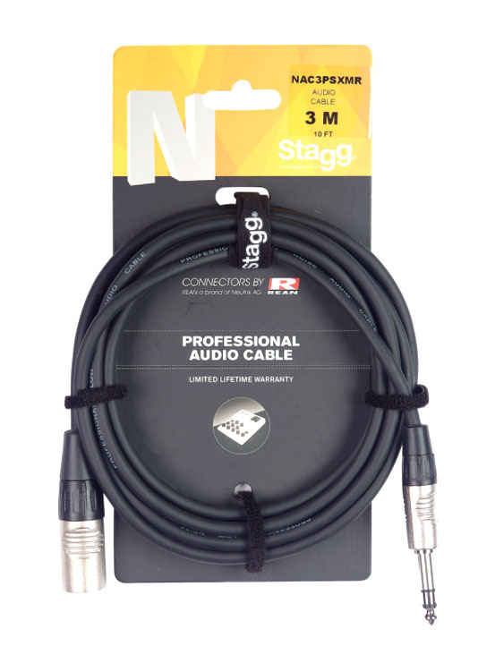 N series audio cable, jack/jack (m/f), stereo, 3 m (10'), Professional audio cable connector by Rean a brand of Neutrik, strong and (OFC) Oxygen free copper.