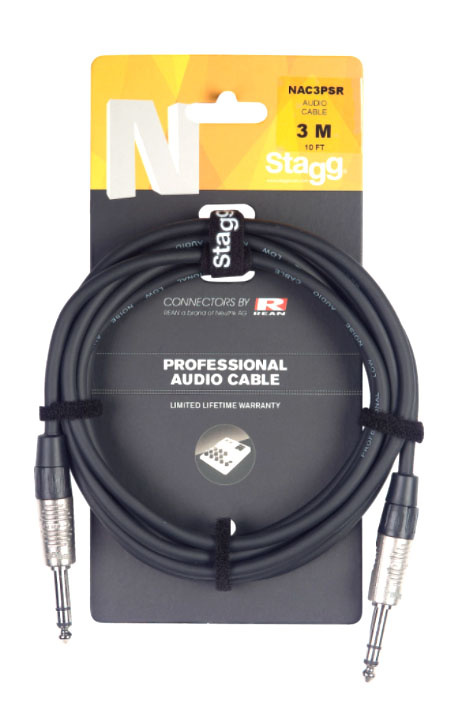 N series audio cable, jack/jack (m/m), stereo, 3 m (10')