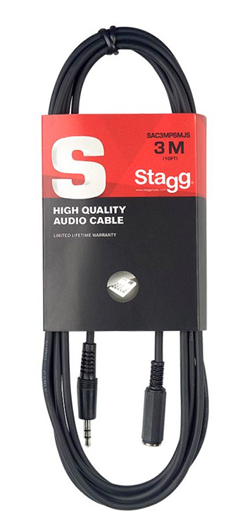 Audio cable, mini jack/mini jack (m/f), 3 m (10')