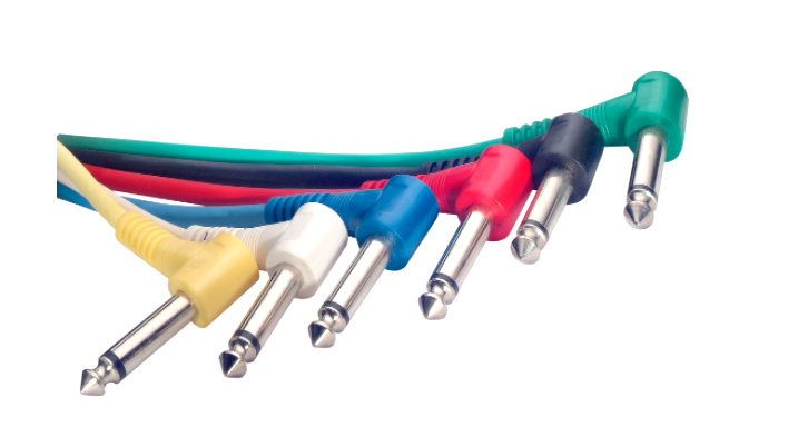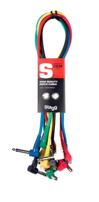 Mono patch cable, 6 x jack/jack (m/m, L-shaped), 30 cm (1'), moulded plastic