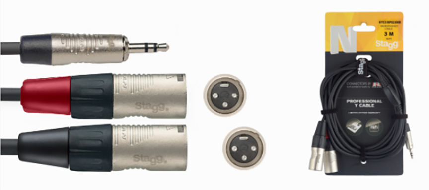 N series Y-cable, mini jack/XLR (m/m), stereo/mono, 3 m (10')