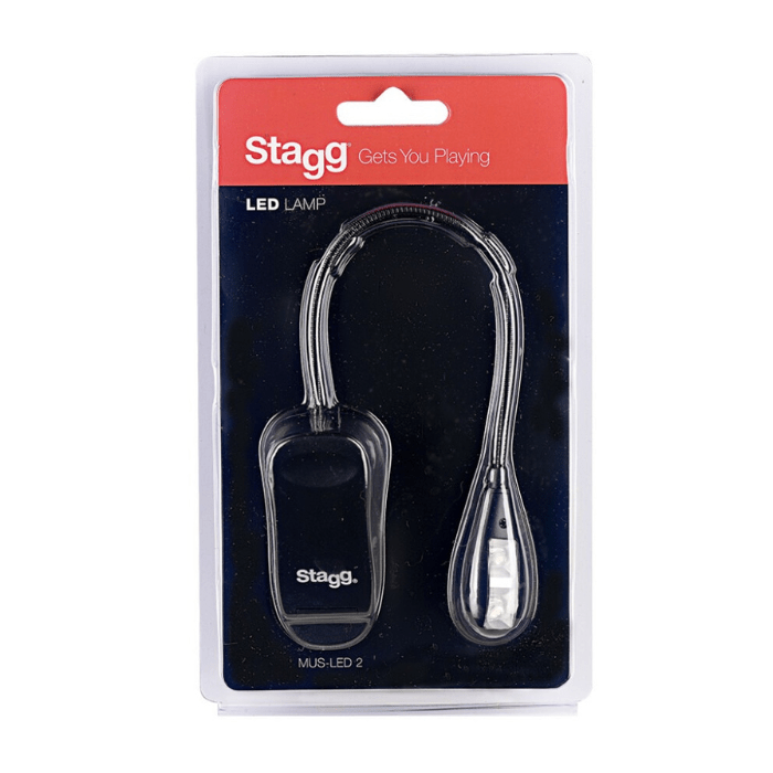 The Stagg 2-LED Music Stand Light operates as a compact, reliable device that provides lighting for reading sheet music under low visibility conditions. The Stagg 2-LED Music Stand Light lets you control the brightness through its two levels while providing illumination through its push-button operation. The adjustable gooseneck provides precise beam direction for your needs while using the device by stand attachment or free placement. The Stagg 2-LED Music Stand Light works perfectly for musical performances and rehearsal spaces and also delivers appropriate illumination for home music practice.