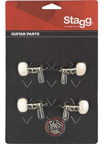 Stagg KU259 Machine Heads For Ukulele. 2L + 2R Machine heads for Ukulele – Open gear with white plastic knobs & standard single-hole post – 1/4″ dia. pegholes required.