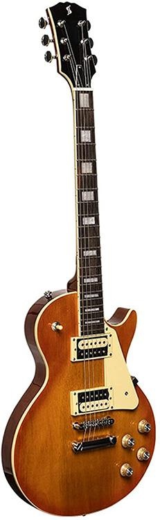 Stagg standard series, electric guitar with solid mahogany body archtop, vintage white neck and body binding.