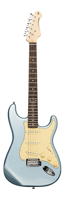 Stagg Standard S electric guitar is made of massive paulownia body, maple neck bolt-on with rosewood fingerboard and ice blue metallic colour finish.