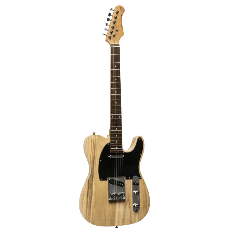 The Stagg STD SERIE-T EL.GT Natural offers a solid Paulownia body, maple neck, rosewood fingerboard, and AlNiCo single-coil pickups with series/parallel switching. Its high-gloss natural finish and quality hardware make it versatile, playable, and durable.