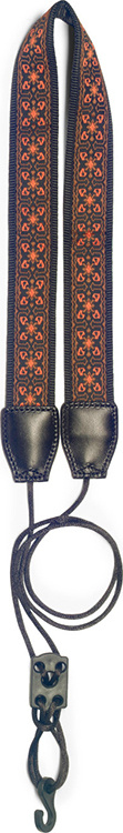 Woven nylon neck strap for ukuleles with sound-hole hook, orange flower pattern