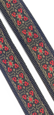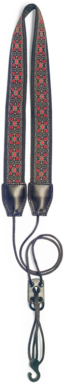 Woven nylon neck strap for ukuleles with sound-hole hook, red flower pattern