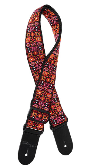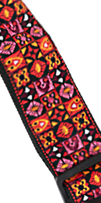 Woven nylon guitar strap with red Hootenanny Mix pattern