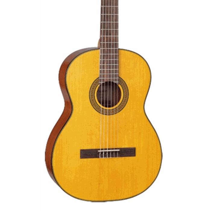 The Takamine GC3 Classical Guitar Natural is a solid top classical guitar designed for a clear and warm sound. Its spruce top delivers a strong tone, while the mahogany back and sides add depth. The mahogany neck and laurel fingerboard feel smooth and comfortable. Traditional fan bracing supports classic nylon string response. Finished in natural gloss with elegant details.