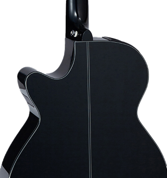 Other great features include a pin-less ovangkol bridge, synthetic bone nut and split bridge saddle, ovangkol headcap, pearloid rosette and dot inlays, chrome die-cast tuners and a beautiful gloss finish. Available in Natural, Black and Sunburst.
