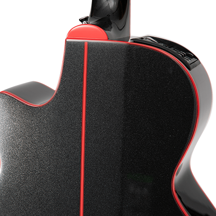 The Takamine GF49CE CB uses spruce wood for its top and sapele wood for its back and sides to achieve its warm and well-balanced sound quality. Users can easily reach higher frets because of the FX cutaway shape of this guitar's body design. The smooth playing experience of this guitar comes from its mahogany neck combined with a laurel fingerboard. Its cosmic black sparkle finish with red binding creates an eye-catching appearance. Using the TP-3G preamp allows users to experience natural amplified tone through its integrated built-in tuner and 3-band EQ.