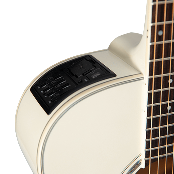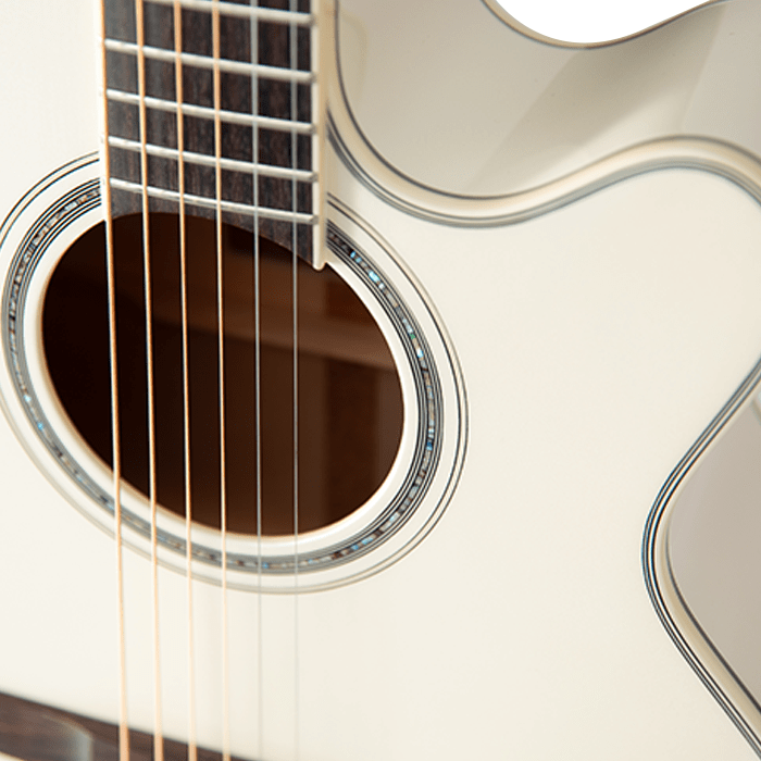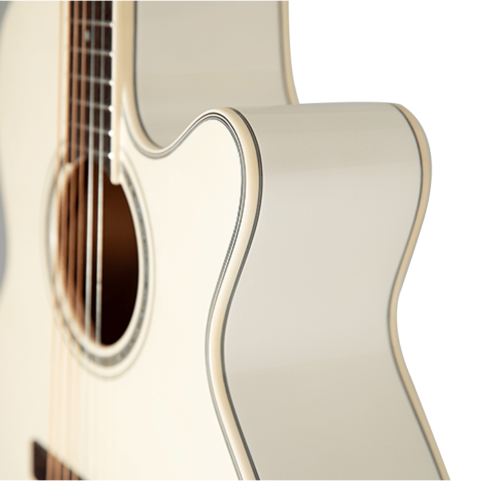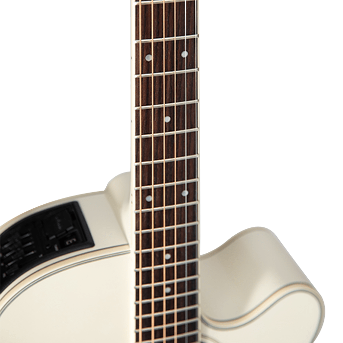 The Takamine GN37CE PW generates bright and sustaining tones through its spruce top and maple back & sides construction, suitable for all musical styles. The NEX cutaway design of its body maintains comfortable musical interaction and ideal sonic balance, which suits strumming and playing by fingers. A pearl white finish together with an abalone rosette brings sophistication to the design. A smooth playing experience comes from the maple trunk connected to a rosewood fretboard that works with the TP-3G preamp, which gives natural amplified sounds, and an integrated built-in tuner with EQ functions.