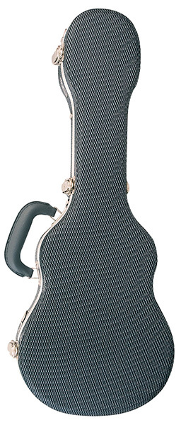 Ukulele-specific TGI ASB-designed hard case. Arched shape with sturdy construction. shoulder strap, grab handle, and locking clasps. padded inside.