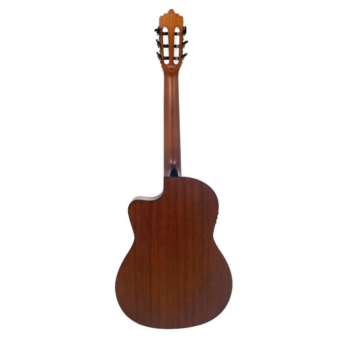 The Vintage Santos Slim Body Electro Acoustic Guitar Black is a comfortable and easy to play guitar. The slim body feels light and natural. The sapele wood creates a warm and clear sound. Built in electronics with a tuner and EQ make it simple to plug in and adjust your tone.