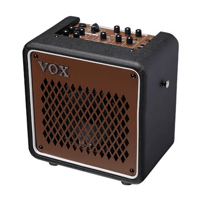 The VOX MINI GO 10 portable amp is lightweight and battery-powered. It features realistic amp models, a vocoder for vocal effects, onboard effects, mic and AUX inputs, a headphone jack, a rhythm machine with various patterns, and a looper to enhance your solo performance. Perfect for practice and gigs on the go!