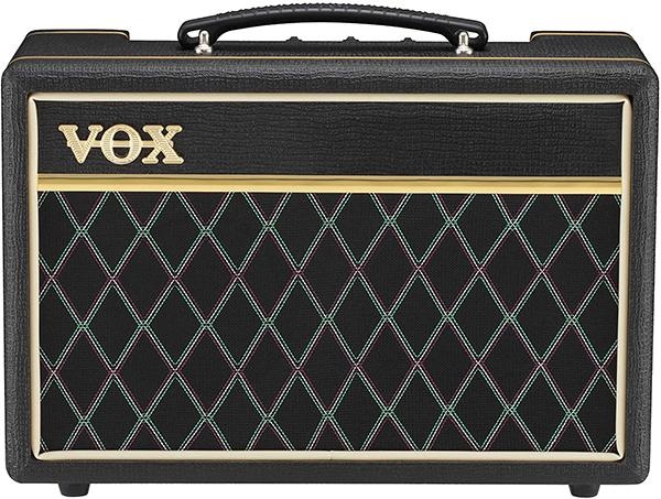 These 10-watt VOX combo amps feature classic styling with basket-weave, leather-look, diamond grille cloth, and chicken head knobs. The all-analog, solid-state design offers the iconic, responsive VOX sound.