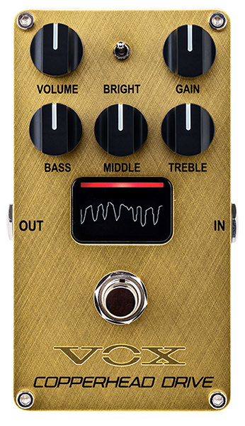 Iconic amp sounds for your pedalboard. The Copperhead Drive valve distortion pedal offers the powerful crunch of British full stack amps in a compact pedal format, powered by Nutube for warm and responsive amp-like tones.