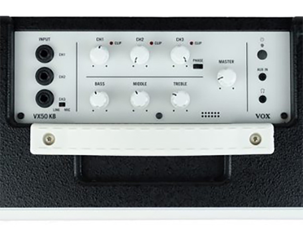 The compact and lightweight VX series is joined by a new 50W model, specialized for keyboard and featuring Nutube, the new vacuum tube. With a coaxial speaker that outputs clear sound even to the high-frequency range and a bass reflex structure that reproduces rich low-frequency sound with ample power, this amp delivers high-quality sound from a compact and lightweight unit. The three-channel design provides independent volume control for each channel, and CH3 also supports mic input. This amp can also function as a simple and easily transportable PA system. A full complement of input/output jacks is also provided, including an AUX IN jack, headphone jack, and a LINE OUT jack for connection to a PA system. This amp is also ideal for on-stage use as a monitor amp.